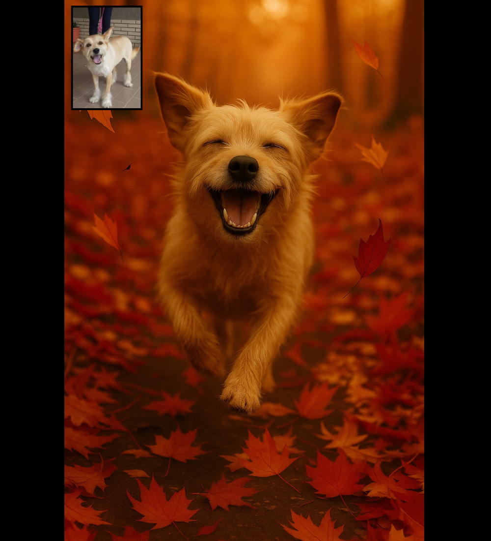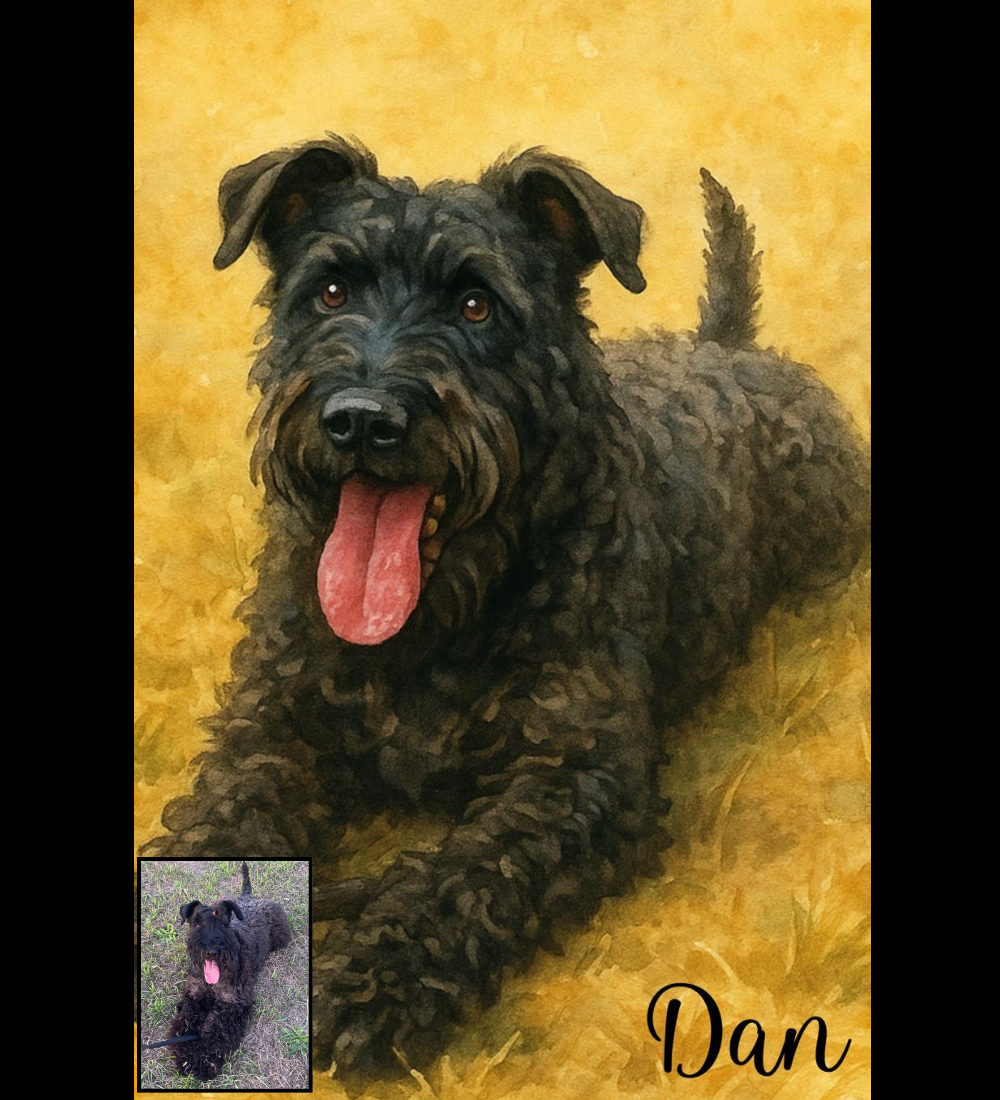 Un ritratto dolce, pulito e luminoso: il tuo pelosetto viene trasformato in un’opera in stile acquerello, con un effetto “dipinto a mano".